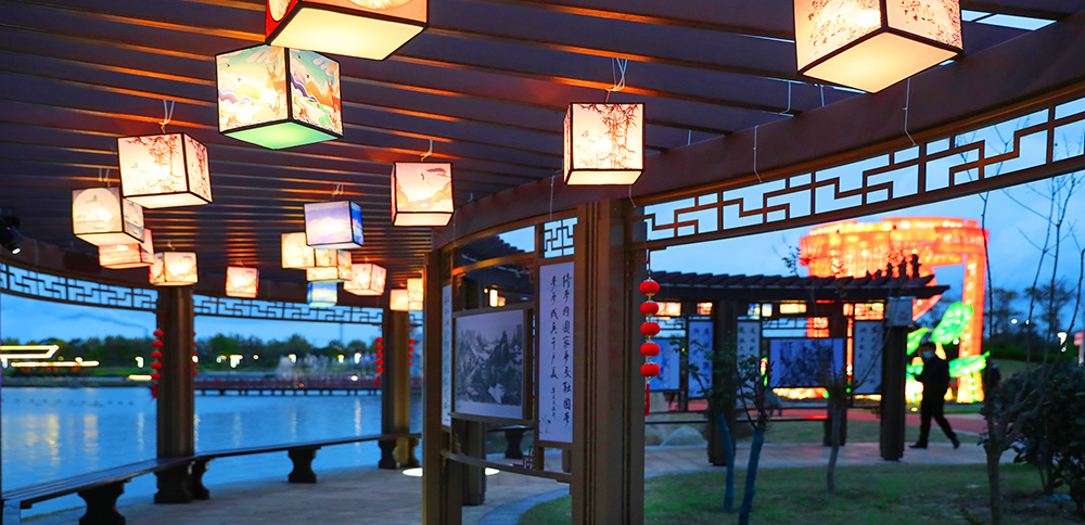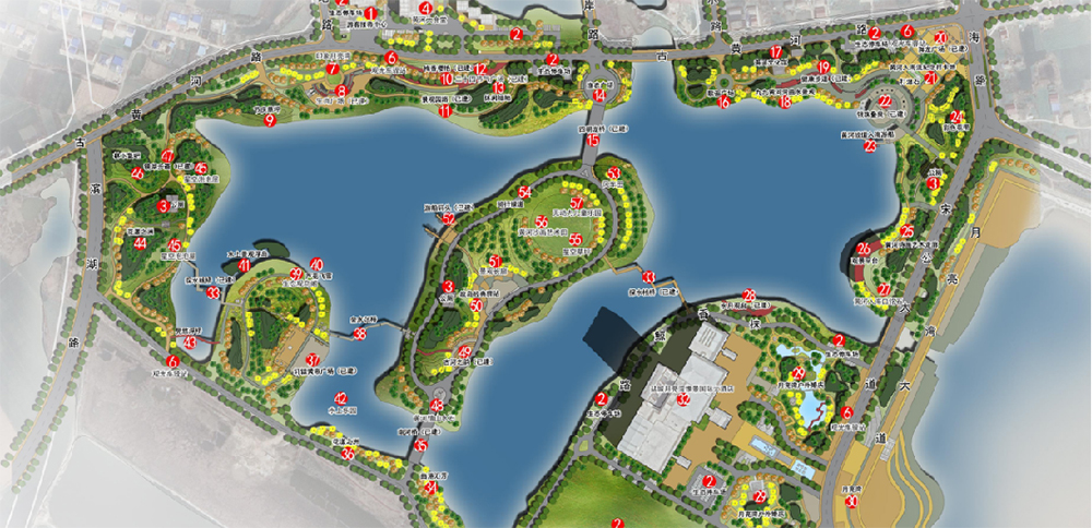 靈龍湖公園陸域面積330畝、水域面積370畝,是一座承載古黃河文化、淮河文化元素的復合型濱湖生態公園,采用“一島、一環、四片區”的空間格局,以綠為韻、以水為脈,將自然與生態完美融合,延續著兩河及海洋文化記憶。